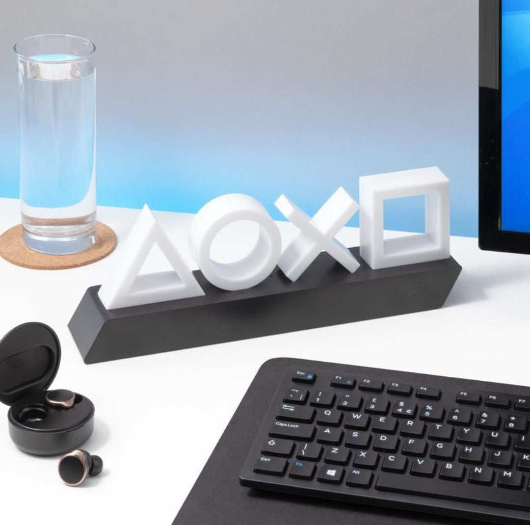 ICONIC SYMBOLS: The light is formed by the four action button symbols (triangle, circle, cross, square), arranged in a row with the PlayStation logo on the base. Measuring 30cm (12 inches) wide, with three light modes - standard, blue on/off phasing, and music reactive.